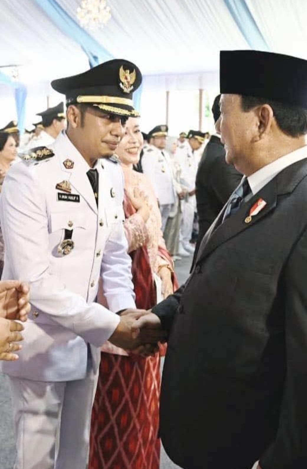 Bupati Enrekang H. Yusuf Ritangga Bersalaman dengan Presiden Prabowo Subianto di Acara Pelantikan