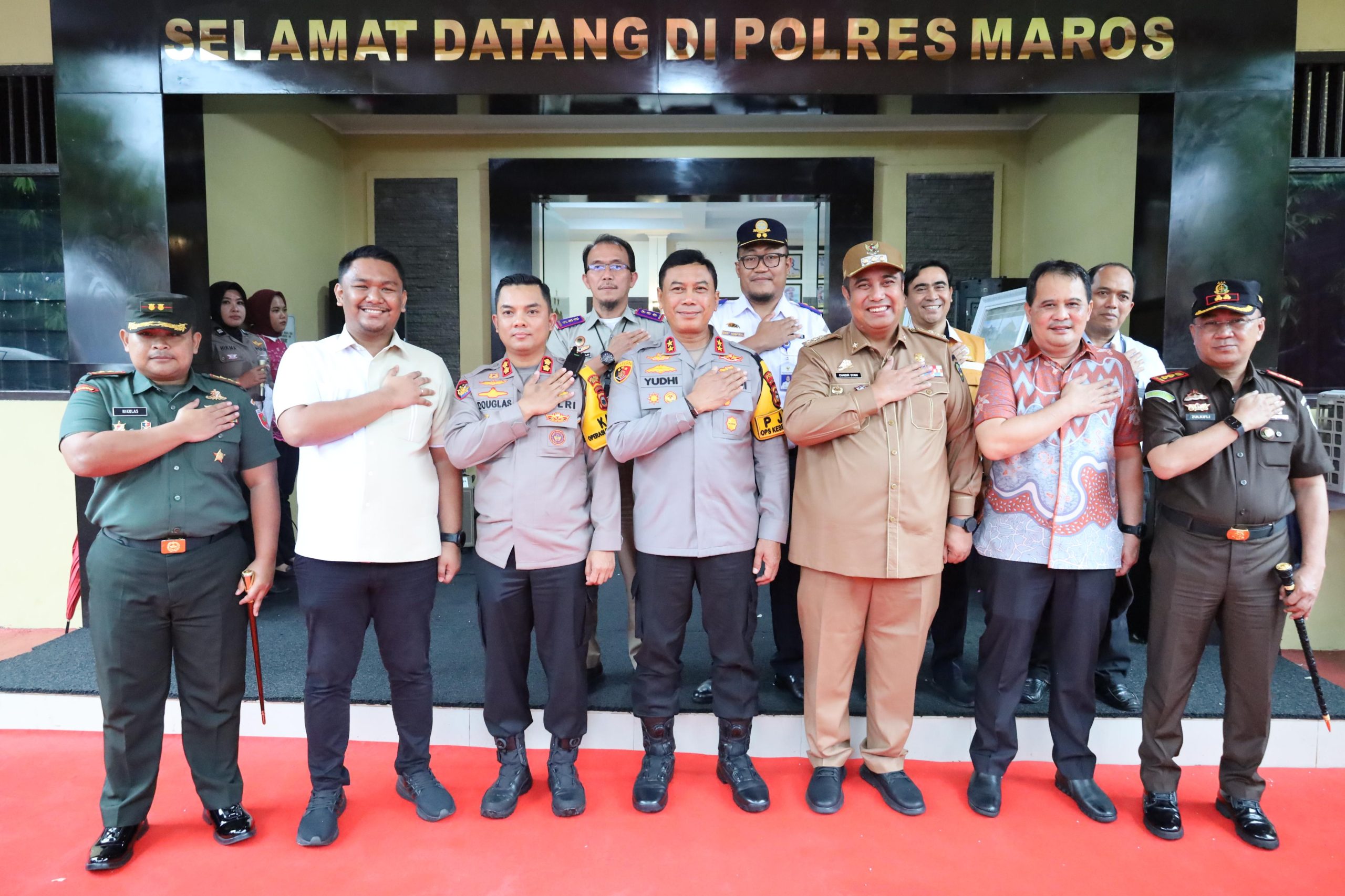 Kunjungan ini turut dihadiri sejumlah pejabat utama Polda Sulsel, termasuk Irwasda Polda Sulsel, Karolog Polda Sulsel, Dirbinmas Polda Sulsel, Dirsamapta Polda Sulsel, Dirreskrimum Polda Sulsel, Dirpolairud Polda Sulsel, Kabidhumas Polda Sulsel, Kabidpropam Polda Sulsel, Kabidkum Polda Sulsel, Kabid TIK Polda Sulsel, Kabiddokkes Polda Sulsel, serta Dansat Brimob Polda Sulsel. Hadir pula Bupati Maros, H.A.S. Chaidir Syam, S.IP., M.H., serta jajaran Forkopimda Kabupaten Maros.