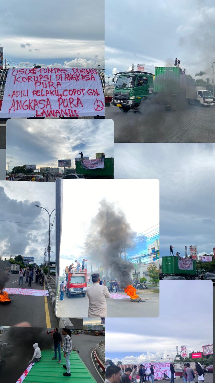Makassar-Cakrawalanews.my.id/ Aliansi Mahasiswa Pemerhati Hukum Melakukan Aksi Jilid 4, Didepan Bandara Sultan Hasanuddin. Terkait Adanya Kasus dugaan Korupsi Di PT Angkasa Pura yang menaungi langsung Bandara Internasional Sultan Hasanuddin.