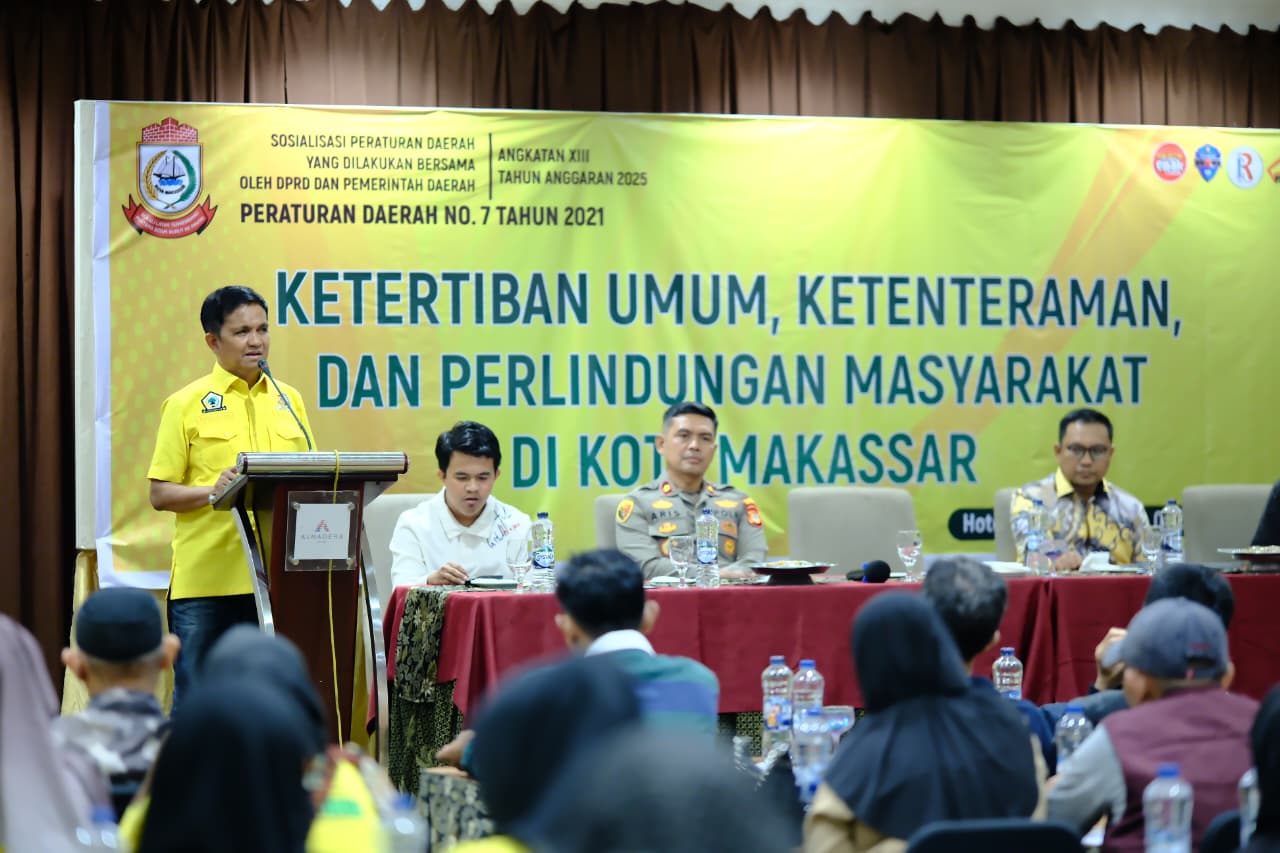 Cakrawalanews, Makassar — DPRD Kota Makassar bersama pemerintah daerah kembali menggelar sosialisasi Peraturan Daerah (Perda) Nomor 7 Tahun 2021 tentang Ketertiban Umum, Ketenteraman, dan Perlindungan Masyarakat. Kegiatan ini dirangkaikan dengan agenda silaturahmi antara para calon ketua RT/RW, baik yang terpilih maupun yang belum terpilih pada pemilihan serentak beberapa waktu lalu.